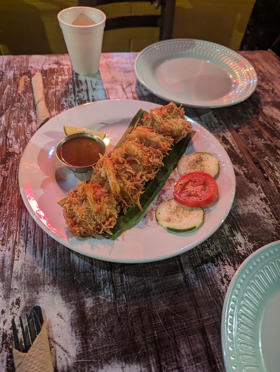 I was on the hunt for fresh jumbo coconut shrimp in Playa, and damn did I find it at Roots Jamaican Kitchen. The shrimp were huge, perfectly cooked, and that sauce on top was the cherry on the cake. I also ordered the half Jamaican chicken and fried plantain — honestly some of the best chicken I’ve ever had, packed with flavor, and the plantain was sweet and absolutely perfect. Amazing food, great vibes, and super fresh. Highly recommend.